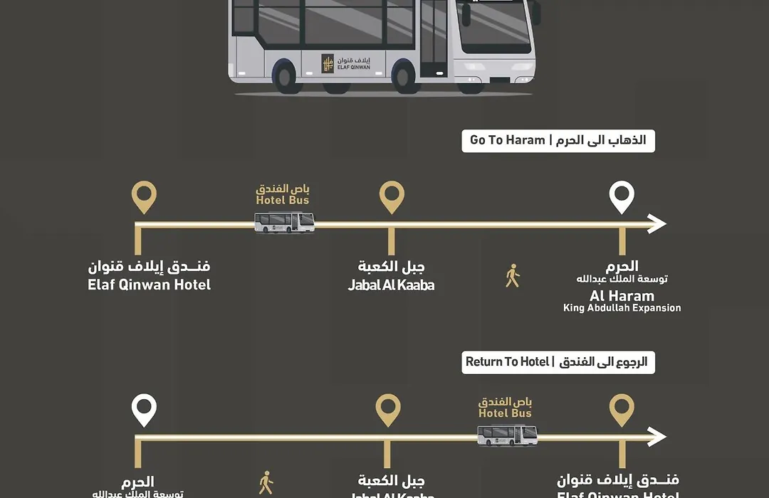 Situated approximately a 10-minute drive from the Kaaba, the 4-star Elaf Qinwan Hotel Mecca includes a restaurant.